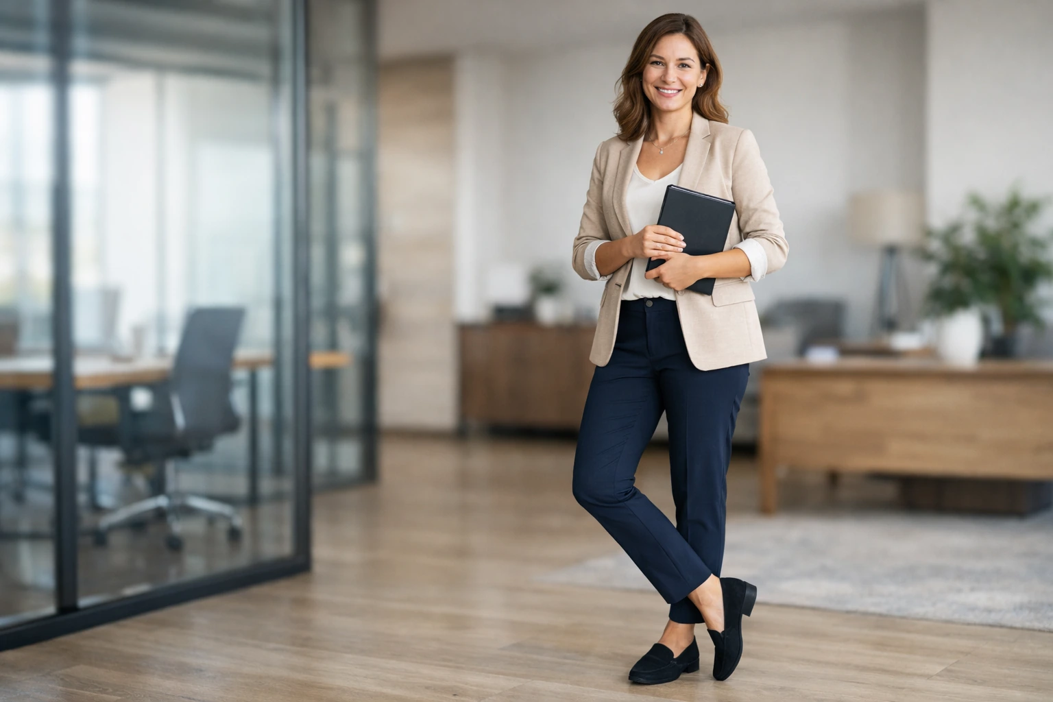Met een paar sterke basisstukken, slimme stoffen en schoenen die je dag dragen, kun je er elke werkdag professioneel uitzien én je comfortabel voelen. Het resultaat: minder afleiding, meer zelfvertrouwen en een outfit die net zo hard werkt als jij.